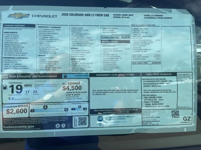 Summit White 2026 Chevrolet Colorado LT 4WD 8-Speed Automatic 2.7L I4 Turbocharged DOHC 16V LEV3-ULEV50 310hp 4WD.