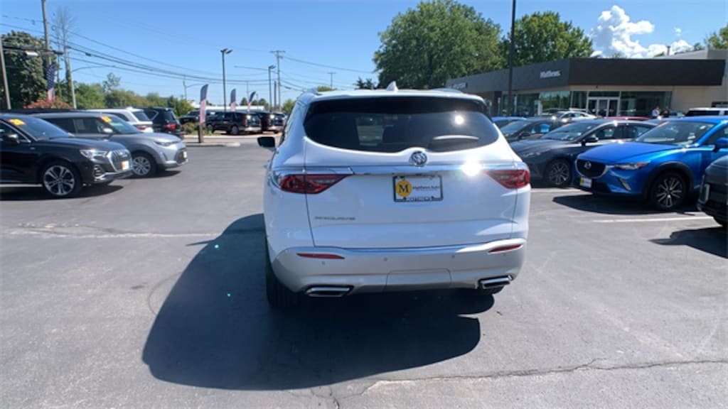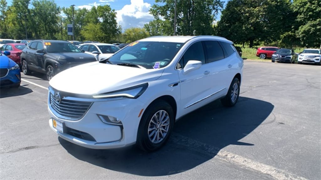 Summit White 2024 Buick Enclave Essence FWD 9-Speed Automatic 3.6L V6 SIDI VVT FWD, 18" Aluminum Wheels, 3.49 Final Drive Axle Ratio, 3rd row seats: split-bench, 4-Wheel Disc Brakes, 6 Speakers, 6-Speaker Audio System Feature, 6-Way Power Front Passenger Seat Adjuster, 7-Passenger Seating, 8-Way Power Driver Seat Adjuster, ABS brakes, Air Conditioning, Alloy wheels, AM/FM radio: SiriusXM with 360L, Auto High-beam Headlights, Auto-dimming door mirrors, Auto-dimming Rear-View mirror, Automatic temperature control, Brake assist, Bumpers: body-color, Compass, Delay-off headlights, Driver door bin, Driver vanity mirror, Dual front impact airbags, Dual front side impact airbags, Electronic Stability Control, Emergency communication system: OnStar and Buick connected services capable, Four wheel independent suspension, Front anti-roll bar, Front Bucket Seats, Front Center Armrest, Front dual zone A/C, Front Mounting License Plate Bracket Package, Front reading lights, Fully automatic headlights, Garage door transmitter, Heated door mirrors, Heated Driver & Front Passenger Seats, Heated front seats, Heated steering wheel, Illuminated entry, Leather steering wheel, Low tire pressure warning, Occupant sensing airbag, Outside temperature display, Overhead airbag, Overhead console, Panic alarm, Passenger door bin, Passenger vanity mirror, Perforated Leather-Appointed Seat Trim, Power door mirrors, Power Driver Lumbar Control Seat Adjuster, Power driver seat, Power Liftgate, Power Passenger Lumbar Control Seat Adjuster, Power passenger seat, Power steering, Power windows, Preferred Equipment Group 1SL, Premium audio system: Buick Infotainment System, Radio data system, Radio: Buick Infotainment System AM/FM Stereo, Rear air conditioning, Rear anti-roll bar, Rear reading lights, Rear window defroster, Rear window wiper, Remote keyless entry, Roof rack: rails only, Security system, SiriusXM w/360L, Speed control, Speed-sensing steering, Spoiler, Steering wheel mounted audio controls, Tachometer, Telescoping steering wheel, Tilt steering wheel, Traction control, Trip computer, Turn signal indicator mirrors, Variably intermittent wipers, Vehicle Health Management, Voltmeter, Wireless Apple CarPlay/Wireless Android Auto.