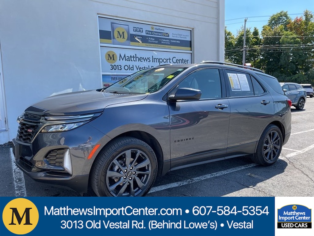 Matthews Import Center promises each customer a thorough and confident 120-point inspection on our used inventory guaranteeing a relaxing and peace-of-mind experience. We are located behind Lowes in Vestal NY. Or call us at (607) 729 - 6261Matthews Import Center3013 Old Vestal RoadVestal NY 13850. Iron Gray Metallic 2022 Chevrolet RS Equinox AWD 6-Speed Automatic Electronic with Overdrive 1.5L DOHC25/30 City/Highway MPG