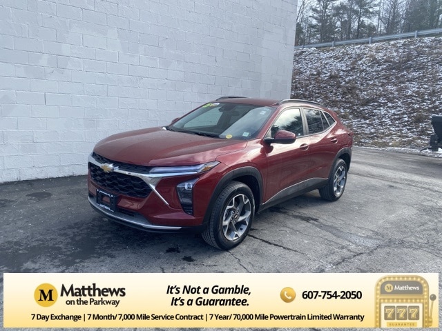 Our 2025 Chevrolet Trax LT is sharp in Crimson Metallic! This SUV has a turbocharged 1.2L engine and plenty of leg room inside.