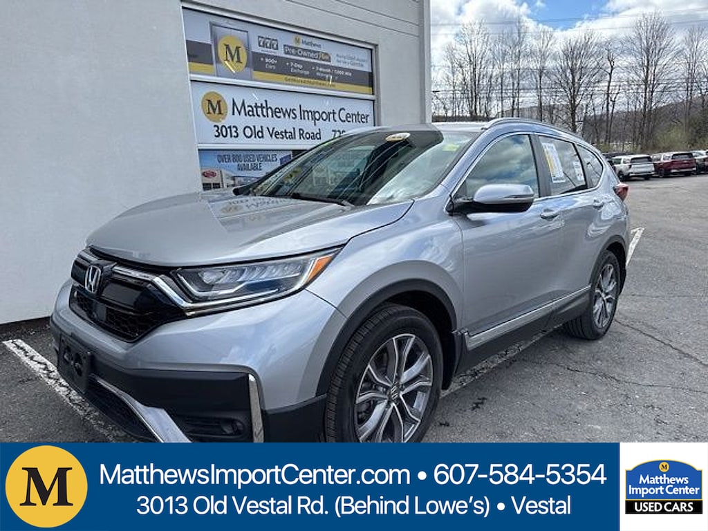 Silver 2022 Honda CR-V Touring AWD CVT 1.5L I4 DOHC 16V27/32 City/Highway MPGMatthews Import Center promises each customer a thorough and confident 120-point inspection on our used inventory guaranteeing a relaxing and peace-of-mind experience. We are located behind Lowes in Vestal NY. Or call us at (607) 729 - 6261 Matthews Import Center 3013 Old Vestal Road Vestal NY 13850.Odometer is 24921 miles below market average!