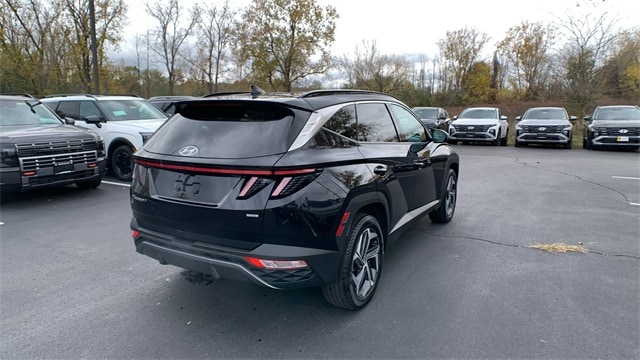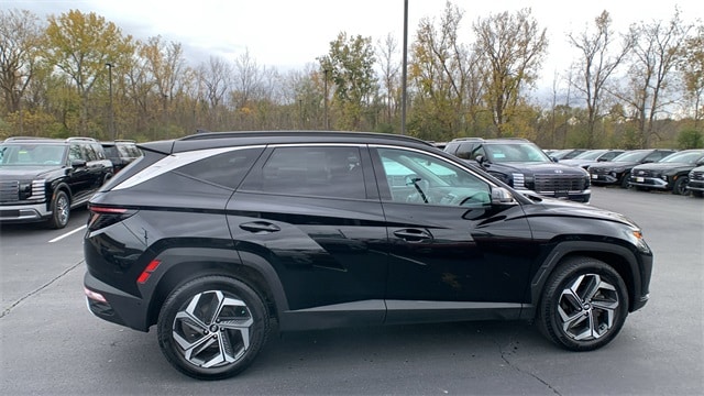 Phantom Black 2022 Hyundai Tucson Limited AWD 8-Speed Automatic with SHIFTRONIC 2.5L I4 DGI DOHC 16V LEV3-ULEV70 187hp AWD, 3.648 Axle Ratio, 4-Wheel Disc Brakes, 8 Speakers, ABS brakes, Air Conditioning, Alloy wheels, AM/FM radio: SiriusXM, Apple CarPlay & Android Auto, Auto High-beam Headlights, Auto-dimming Rear-View mirror, Automatic temperature control, Brake assist, Bumpers: body-color, Carpeted Floor Mats, Delay-off headlights, Driver door bin, Driver vanity mirror, Dual front impact airbags, Dual front side impact airbags, Electronic Stability Control, Emergency communication system: Blue Link Connected Car Service (3-year complimentary subscription), Four wheel independent suspension, Front anti-roll bar, Front Bucket Seats, Front Center Armrest, Front dual zone A/C, Front reading lights, Fully automatic headlights, Garage door transmitter: HomeLink, Heated & Ventilated Front Bucket Seats, Heated door mirrors, Heated front seats, Heated rear seats, Heated steering wheel, Illuminated entry, Leather Seat Trim, Low tire pressure warning, Memory seat, Navigation System, Occupant sensing airbag, Option Group 01, Outside temperature display, Overhead airbag, Overhead console, Panic alarm, Passenger door bin, Passenger vanity mirror, Power door mirrors, Power driver seat, Power Liftgate, Power moonroof, Power passenger seat, Power steering, Power windows, Radio data system, Radio: Bose Premium w/AM/FM/HD/SiriusXM Audio System, Rain sensing wipers, Rear anti-roll bar, Rear reading lights, Rear seat center armrest, Rear window defroster, Rear window wiper, Remote keyless entry, Roof rack: rails only, Security system, Speed control, Split folding rear seat, Spoiler, Steering wheel mounted audio controls, Tachometer, Telescoping steering wheel, Tilt steering wheel, Tow Hitch, Traction control, Trip computer, Turn signal indicator mirrors, Variably intermittent wipers, Ventilated front seats, Wheels: 19" x 7.5J" Machine-Face Finish Alloy.