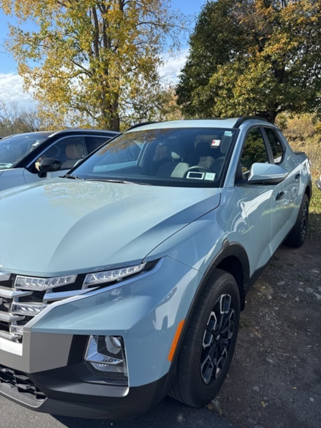 Certified. Blue Stone 2023 Hyundai Santa Cruz SEL AWD 8-Speed Automatic with SHIFTRONIC 2.5L I4 10.25" Digital Instrument Cluster, 115V AC Power Inverter in Bed, 18" x 7.5J Alloy Wheels, 2 LED Bed Lighting, 4-Wheel Disc Brakes, 4.081 Axle Ratio, 6 Speakers, ABS brakes, Activity Package, Air Conditioning, Alloy wheels, AM/FM radio: SiriusXM, Apple CarPlay & Android Auto, Auto High-beam Headlights, Auto-leveling suspension, Brake assist, Bumpers: body-color, Carpeted Floor Mats, Conventional Power Sunroof, Delay-off headlights, Driver door bin, Driver vanity mirror, Dual C-Channel Utility Tracks on Bed Side, Dual front impact airbags, Dual front side impact airbags, Electronic Stability Control, Emergency communication system: Blue Link Connected Car Service (3-year complimentary subscription), Exterior Parking Camera Rear, First Aid Kit, Fitted Liners, Four wheel independent suspension, Front anti-roll bar, Front Bucket Seats, Front Center Armrest, Front reading lights, Fully automatic headlights, Heated door mirrors, Heated Front Bucket Seats, Heated front seats, Illuminated entry, Integrated Tonneau Cover, LED Front & Rear Maplights, Low tire pressure warning, Mudguards, Occupant sensing airbag, Option Group 02, Outside temperature display, Overhead airbag, Overhead console, Panic alarm, Passenger door bin, Passenger vanity mirror, Power door mirrors, Power driver seat, Power steering, Power windows, Radio data system, Radio: AM/FM/HD Audio System, Rear anti-roll bar, Rear Sliding Glass Window w/Rear Defroster, Rear step bumper, Rear window defroster, Remote keyless entry, Roof Side Rails, Security system, Speed control, Speed-sensing steering, Split folding rear seat, Spoiler, Stain & Odor Resistant Cloth Seat Trim, Steering wheel mounted audio controls, Tachometer, Telescoping steering wheel, Tilt steering wheel, Traction control, Trip computer, Turn signal indicator mirrors, Variably intermittent wipers, Wireless Phone Charger (15W).