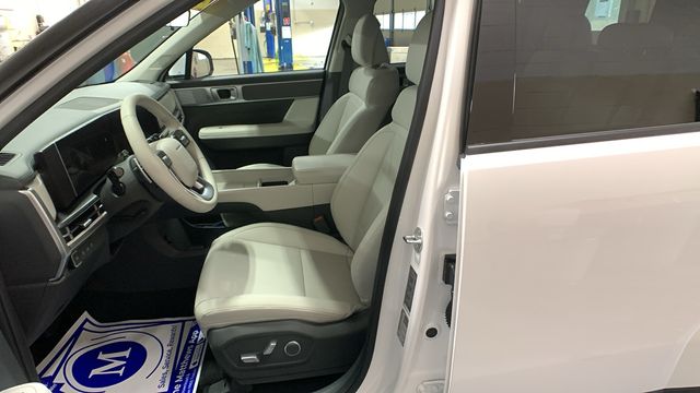 Serenity White 2024 Hyundai Santa Fe SEL AWD Shiftronic 2.5L I4 AWD, Gray w/H-Tex Leatherette Seat Trim, 18" x 7.5J Alloy Wheels, 3rd row seats: bench, 4-Wheel Disc Brakes, 6 Speakers, ABS brakes, Air Conditioning, Alloy wheels, AM/FM radio: SiriusXM, Apple CarPlay & Android Auto, Auto High-beam Headlights, Automatic temperature control, Axle Ratio: 3.316, Brake assist, Bumpers: body-color, Carpeted Floor Mats, Delay-off headlights, Driver door bin, Driver vanity mirror, Dual front impact airbags, Dual front side impact airbags, Electronic Stability Control, Emergency communication system, Exterior Parking Camera Rear, First Aid Kit, Four wheel independent suspension, Front anti-roll bar, Front Bucket Seats, Front Center Armrest, Front dual zone A/C, Front reading lights, Fully automatic headlights, H-Tex Leatherette Seat Trim, Heated door mirrors, Heated Front Bucket Seats, Heated front seats, Illuminated entry, Knee airbag, Leather steering wheel, Low tire pressure warning, Occupant sensing airbag, Option Group 01, Outside temperature display, Overhead airbag, Overhead console, Panic alarm, Passenger door bin, Passenger vanity mirror, Power door mirrors, Power driver seat, Power Liftgate, Power steering, Power windows, Radio: AM/FM/HD Display Audio, Rear anti-roll bar, Rear seat center armrest, Rear side impact airbag, Rear window defroster, Rear window wiper, Remote keyless entry, Roadside Assistance Kit, Security system, Speed control, Speed-sensing steering, Split folding rear seat, Spoiler, Steering wheel mounted audio controls, Tachometer, Telescoping steering wheel, Tilt steering wheel, Traction control, Trip computer, Turn signal indicator mirrors, Variably intermittent wipers.