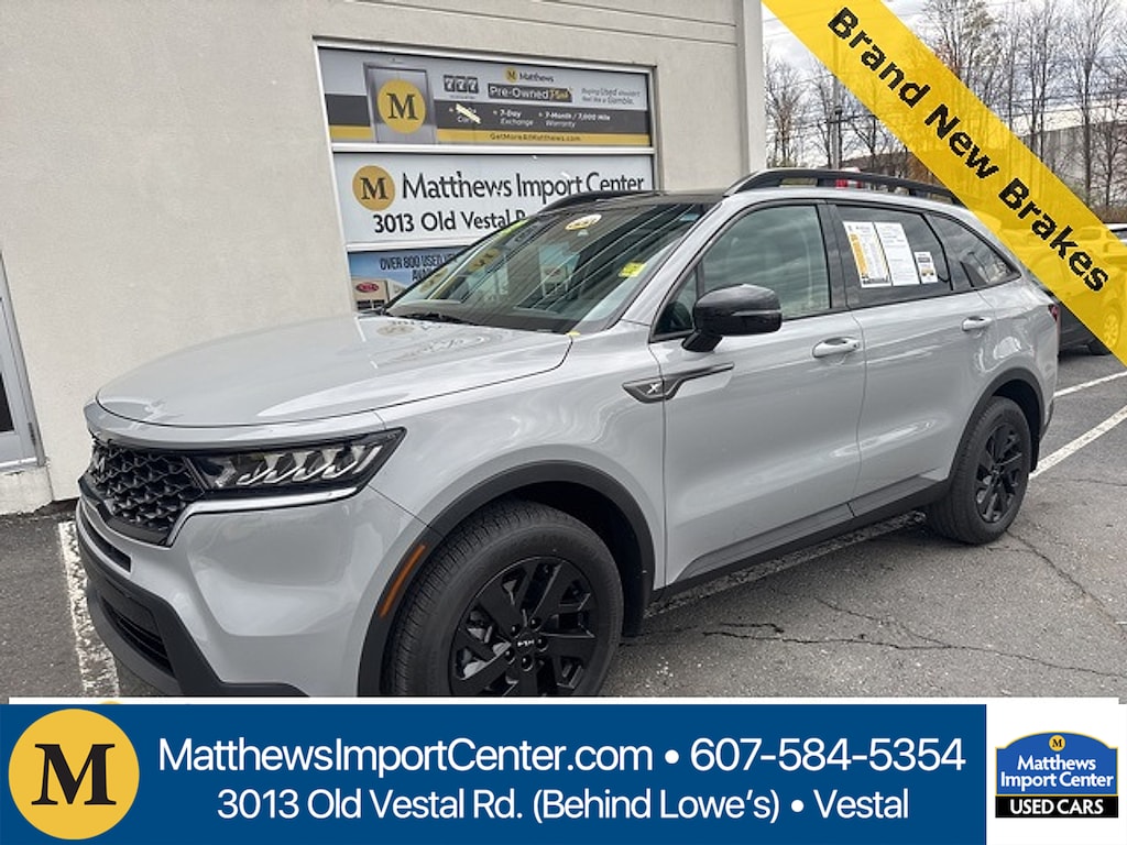 Matthews Import Center promises each customer a thorough and confident 120-point inspection on our used inventory guaranteeing a relaxing and peace-of-mind experience. We are located behind Lowes in Vestal NY. Or call us at (607) 729 - 6261Matthews Import Center3013 Old Vestal RoadVestal NY 13850. Wolf Gray 2022 Kia S Sorento AWD 8-Speed Automatic 2.5L I4 DGI DOHC 16V LEV3-ULEV70 191hp