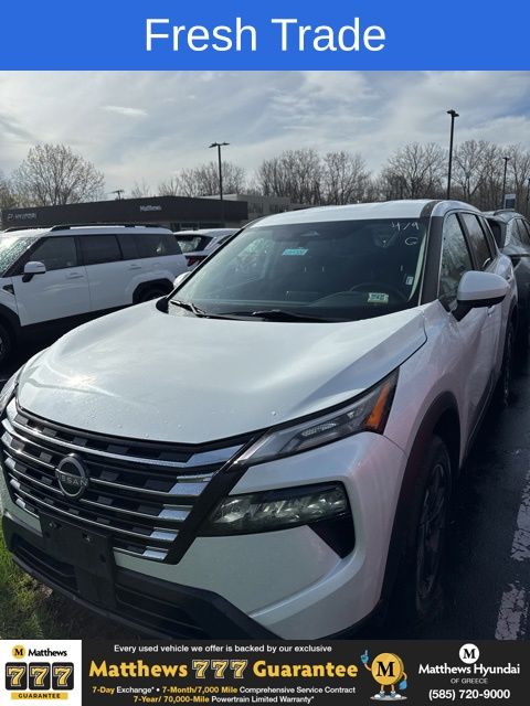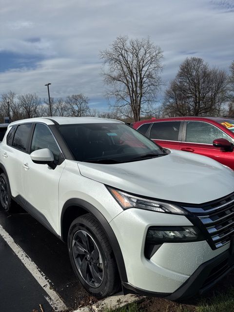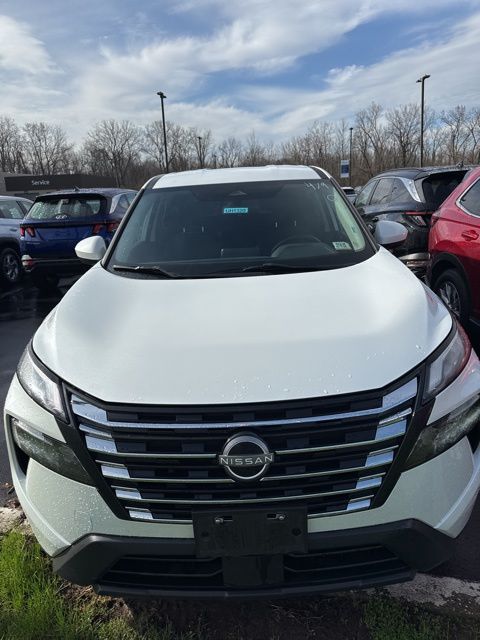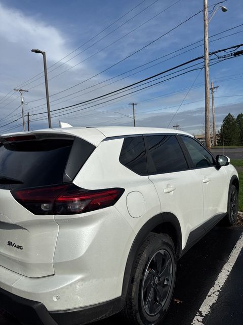 Everest White Pearl/Super Black 2024 Nissan Rogue SV AWD CVT with Xtronic 1.5L DOHC AWD, 4-Wheel Disc Brakes, 5.676 Axle Ratio, 6 Speakers, ABS brakes, Air Conditioning, Alloy wheels, AM/FM radio: SiriusXM, Auto High-beam Headlights, Automatic temperature control, Brake assist, Bumpers: body-color, Cloth Seat Trim w/Patterned Inserts, Delay-off headlights, Driver door bin, Driver vanity mirror, Dual front impact airbags, Dual front side impact airbags, Electronic Stability Control, Emergency communication system: NissanConnect Services, First Aid Kit, Floor Mats w/1-Piece Cargo Area Protector, Four wheel independent suspension, Front anti-roll bar, Front Bucket Seats, Front Center Armrest, Front dual zone A/C, Front reading lights, Fully automatic headlights, Heated door mirrors, Illuminated entry, Knee airbag, Low tire pressure warning, NissanConnect featuring Apple CarPlay and Android Auto, Occupant sensing airbag, Outside temperature display, Overhead airbag, Overhead console, Panic alarm, Passenger door bin, Passenger vanity mirror, Power door mirrors, Power driver seat, Power Liftgate, Power steering, Power windows, Radio data system, Radio: AM/FM NissanConnect, Rear anti-roll bar, Rear Parking Sensors, Rear seat center armrest, Rear side impact airbag, Rear window defroster, Rear window wiper, Remote keyless entry, Speed control, Speed-Sensitive Wipers, Split folding rear seat, Spoiler, Steering wheel mounted audio controls, Tachometer, Telescoping steering wheel, Tilt steering wheel, Traction control, Trip computer, Variably intermittent wipers, Wheels: 18" Dark Painted Machine Finished Alloy.